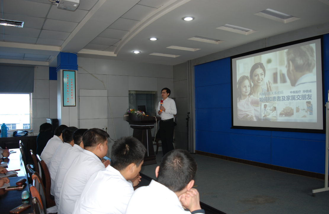 为进一步提高医院医务人员的沟通技巧和服务水平,强化服务意识,促进医患和谐,2018年3月21日下午,河南誉美肾病医院邀请了医疗经营项目总监孙锁成到院进行医患沟通技能培训。培训会由院长助理耿祥玉主持,各病区医生、护士长、职能部门负责人及医护人员共80余人参加培训。