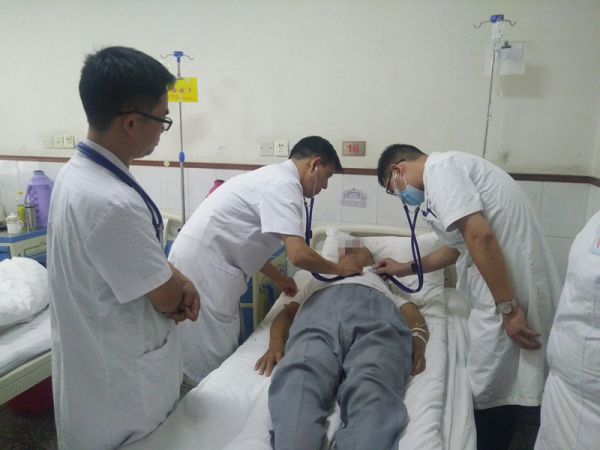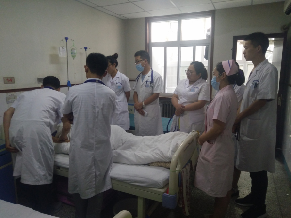 查房严格按照“背”、“查”、“问”、“讲”、“解”程序进行,医务科科长李院长和医院医师组成员一边听取二病区医生高凯勇的汇报,一边对病例进行了检查,通过结合护士长总结的日常检查结果,对住院患者的病情进行了深度了解,并按照实际情况,对各个患者接下来的治疗方案的细节进行了规划和完善。