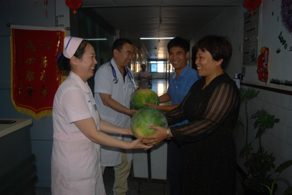 炎炎夏日,三伏到来,连降暴雨过后气温剧增,不断慕名而来的患者也让医护人员工作量倍增,加班加点成为常态。为了他们能够以更加饱满的状态投入到工作中,更好地为患者服务,院长李志强和我院主要走访慰问了医院各个岗位,将冰爽清凉的防暑降温佳品送到医护人员手中。