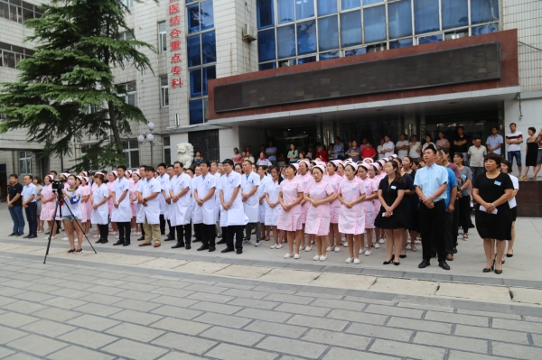 随着河南誉美肾病医院院歌的响起,活动正式拉开帷幕,参会的全体医护人员注视着河南誉美肾病医院院旗缓缓升上了天空。紧接着,院长助理高凯勇带领大家重温了院训,在一声声坚定的誓言中,与会人员重新学习了誉美人始终坚持的行为准则、价值导引和精神追求。
