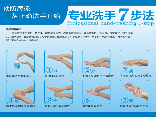 对全院医护进行手卫生宣传教育,做到用七步洗手法清洁自己的手,清除手部污物和细菌,预防接触感染,使全院医务人员的依从性得到了很大的提高,逐渐形成了具有医院的手卫生文化,并成为我院感控的一道亮丽风景。