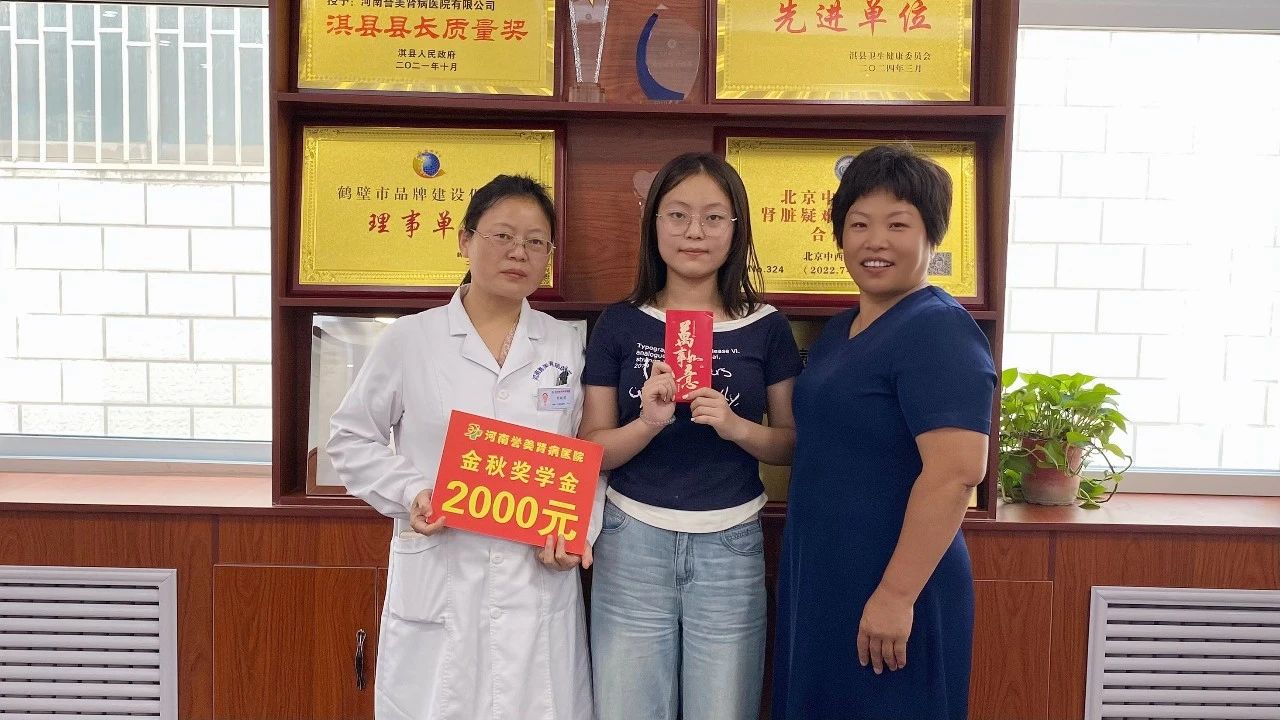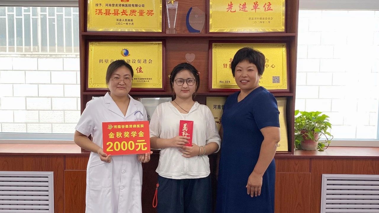 笔墨耕耘终得报,金榜题名绽芳华。为深入践行 “家” 文化核心理念,将人文关怀落到实处,以榜样力量激励员工子女勤学笃行,8月18日,河南誉美肾病医院隆重举行 “金秋奖学金发放仪式”,为2025年高考中脱颖而出的四位员工子女颁发荣誉与奖励。