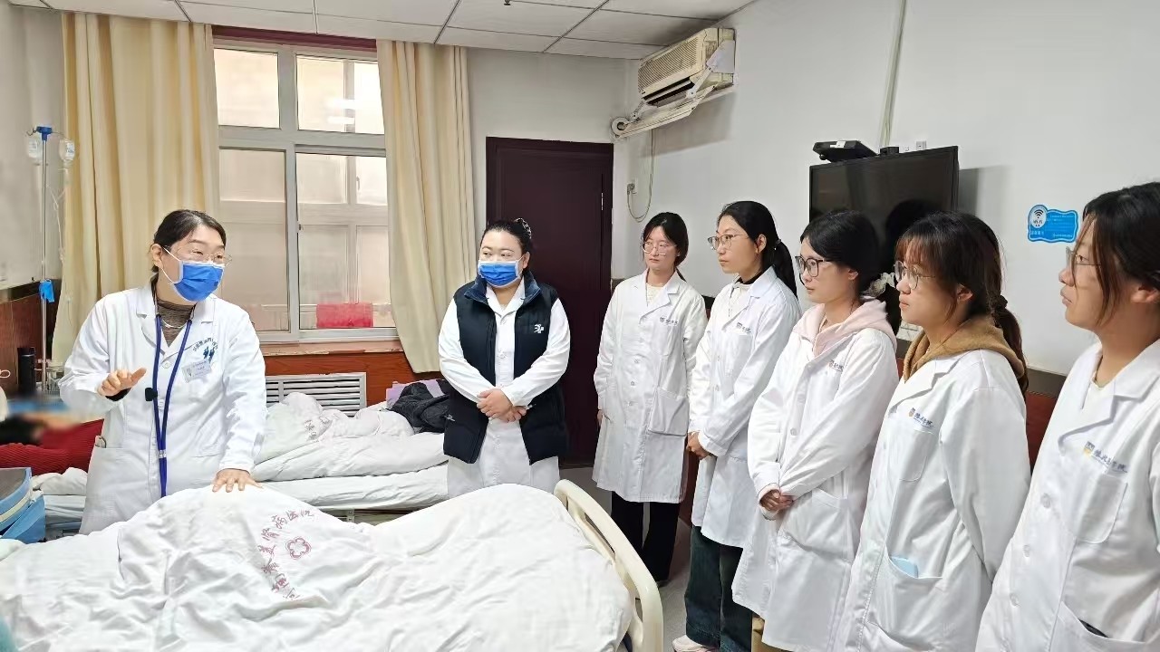 在分组环节中,同学们走进七个病区,与科室主任一同参与查房,近距离观察医患沟通、病情分析与诊疗过程。查房过程中,主任们不仅细致分析病情,更主动倾听患者的感受与需求,耐心解答患者和家属的疑问,在制定治疗方案时充分考虑患者的实际情况与个人意愿。这种真诚的沟通与关怀,让同学们亲眼见证了何为“发自内心地关心每一位患者”,也对“以患者为中心”的医疗服务有了真切而深刻的理解。